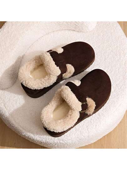 女士平底休闲鞋冬季新款低帮一脚蹬鞋保暖内衬防滑户外时尚运动鞋 - 棕色 - 查看 1