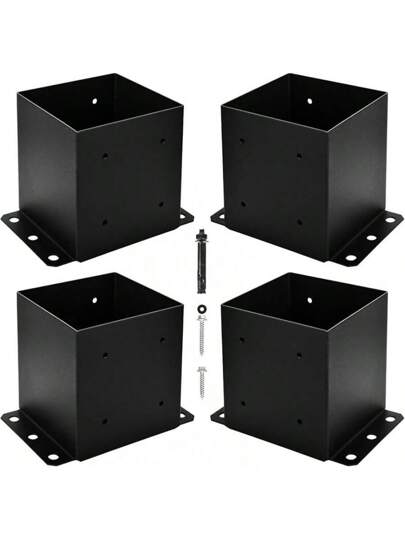 6x6 Post Base, Inner Size 5.5"X5.5"Deck Post Base, Deck Post Base For Concrete, For Mailbox Support Wood Fence Post Anchort (Black - Set 4) - 第四組 - 查看 4