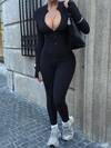 Mystra Y2K 街头风休闲罗纹拉链连体裤 黑色 春季