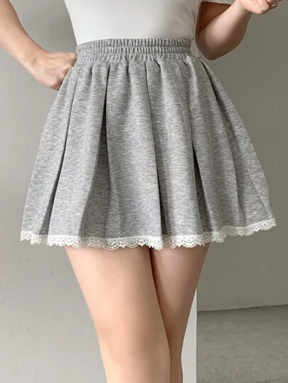 DAZY 女士蕾丝拼布百褶裙 - 灰色 - 查看 1