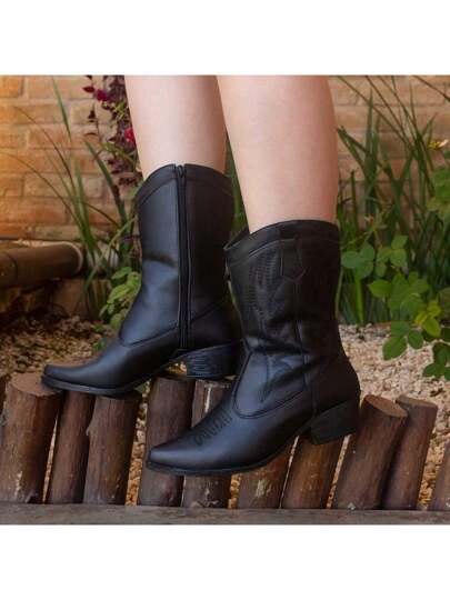 Women Mid-Calf Boots - 黑色 - 查看 1