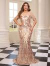 Coutiva 大码亮片拼布露肩正式晚礼服
