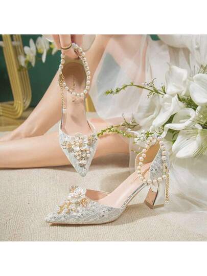 Women Pumps - 銀色粗跟7厘米 - 查看 7