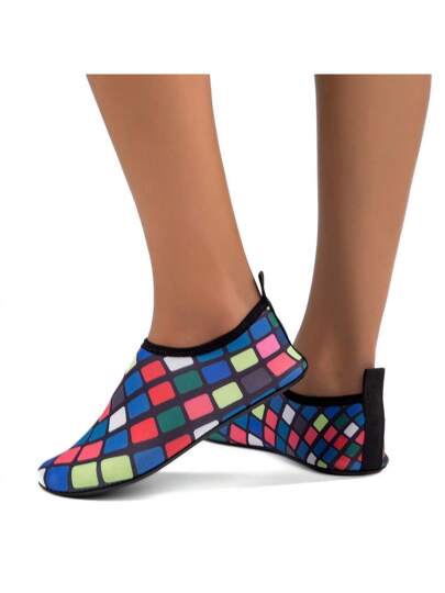 女用沙灘鞋速乾防滑水上運動格紋潛水鞋