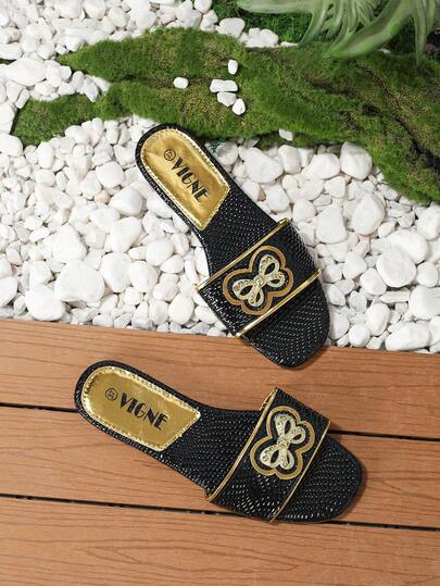 女士蝴蝶時尚度假風夏季宅配拖鞋 - 黑色 - 查看 1