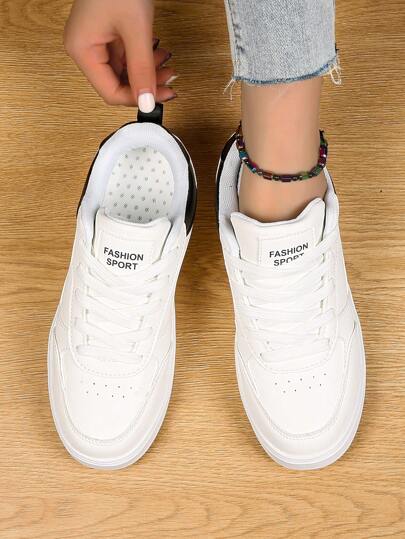 女性休閒運動鞋,秋冬系列,時尚白色運動鞋,適用於學生和女士 - 黑與白 - 查看 1