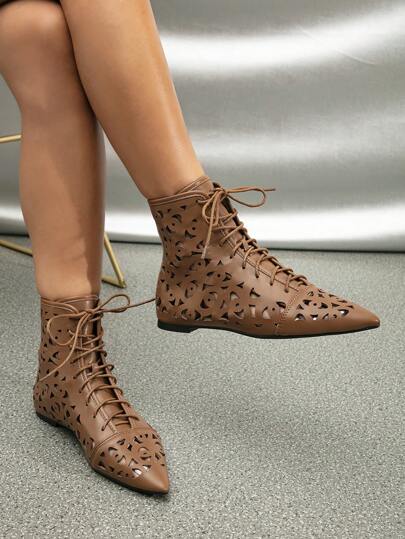 女性感鏤空透氣時尚平底羅馬涼鞋 - 棕色 - 查看 1