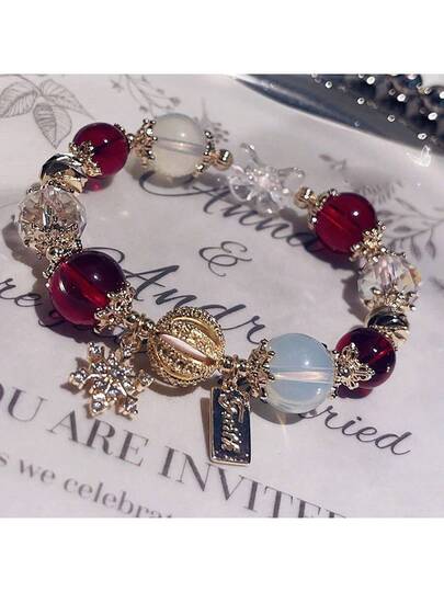 女士雪花手鍊,ins風格,輕巧時尚高端,專業設計,甜美百搭,字母吊墜手鍊 - 金色 - 查看 1