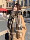 1pc 优雅新款冬季围巾女韩版加厚格子图案围巾一对简约围巾冬季学生围巾保暖柔软冬季户外保暖配饰女