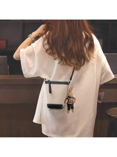 Women Shoulder Bags - 卡其配黑帶掛件 - 查看 1