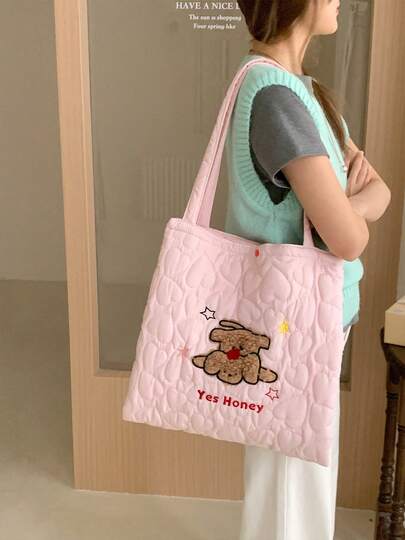 Women Shoulder Bags - 蘋果小狗絎縫雙層包-粉紅色 - 查看 1
