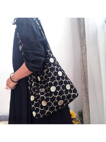 Women Shoulder Bags - 黑底刺繡大花(腋下包) - 查看 1