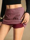 Poéselle 女士纯色时尚裹身宽松腰部短裤棕色裙裤棕色短裤女士棕色半身裙裤曲线女士裙裤