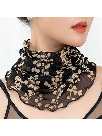 女款树叶图案防晒围脖 - 黑與白 - 查看 1
