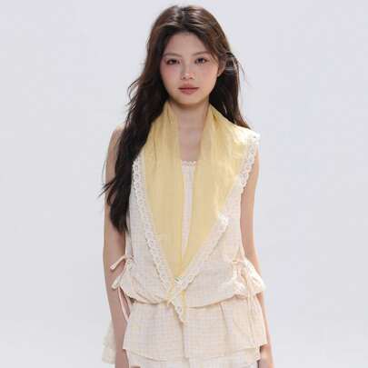 Women Vintage Grey Lace Trim Scarf Versatile Headwrap Hairband Decoration Daily Vacation Photography Sun Protection Shawl