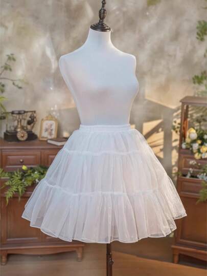 女式 50 厘米无骨柔软薄纱衬裙,多层蓬松衬裙,适合角色扮演、日常穿着、万圣节、圣诞节服装 - 白色 - 查看 1