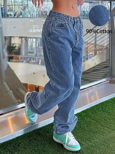 女士百搭休闲直筒牛仔裤,Y2K风格,四季皆宜