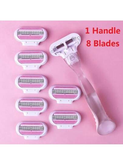 女士比基尼剃毛器,三刀片剃须刀,可替换刀头,适用于私处、腋下和腿部,旅行套装 - 粉色 - 查看 8