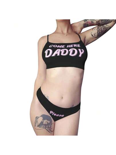 Women's Bikini Swimsuit Come Here Daddy Bathing Suits Push-Up Bra Brief 2 Piece Lingerie Set