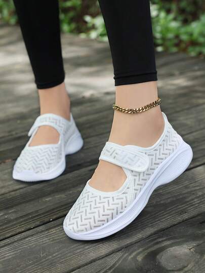 女士透气网眼一脚蹬休闲鞋,宽松版型,适合妈妈 - 白色 - 查看 1