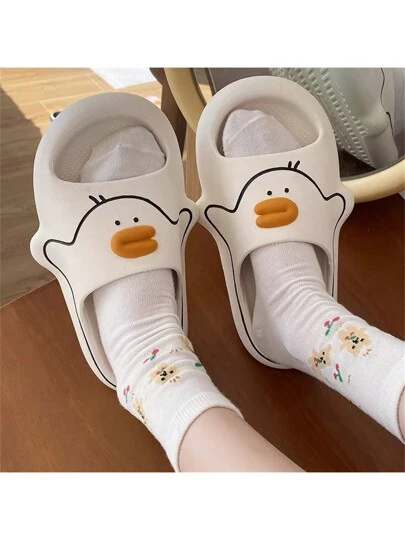 女士夏季卡通鸭子主题家居拖鞋,休闲风格,情侣浴室防滑白色 PVC 沙滩拖鞋 - 白色 - 查看 1