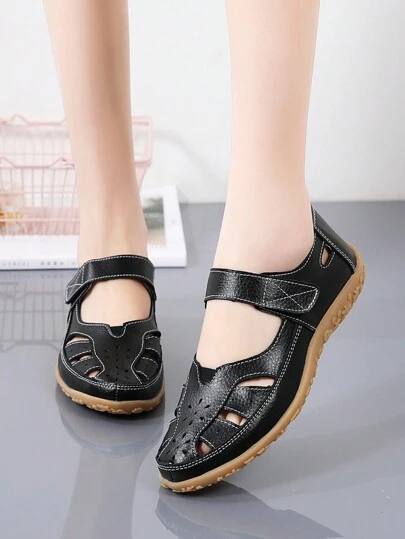女士休闲镂空透气平底凉鞋,2025年夏季新款浴室拖鞋护士鞋,舒适防滑软底百搭夏季鞋,黑色 - 黑色 - 查看 1