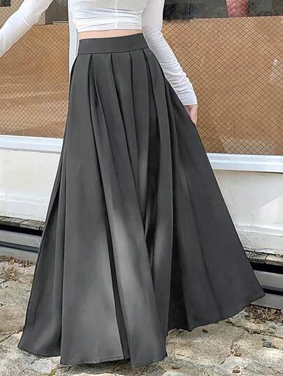 女士休闲褶皱 A 字形长裙 - 灰色 - 查看 1
