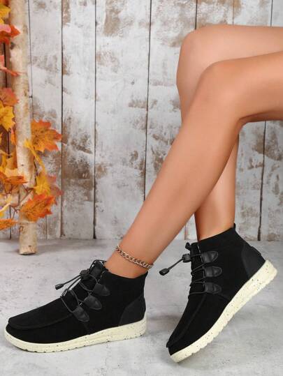 女性休閒運動鞋,女式黑色高筒系帶拖鞋,戶外運動休閒鞋 - 黑色 - 查看 1