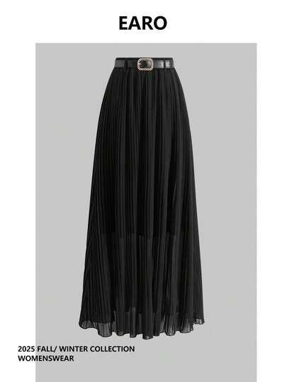 女士雪纺百褶裙,优雅修身,百搭 - 黑色 - 查看 1