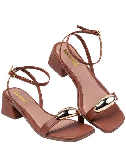 Women's Comfortable Block Heel Sandal With Metallic Embellishment