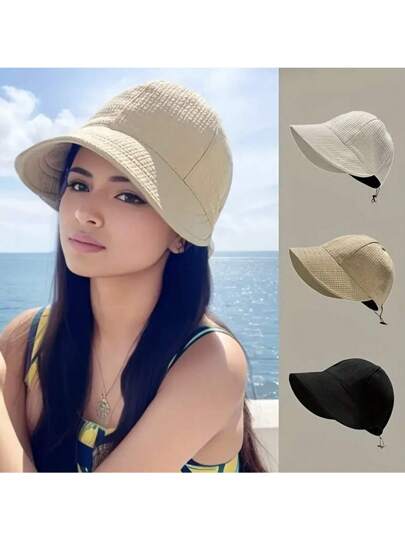 女士抽繩凹凸棉紋棒球帽,時尚防曬海灘旅行遮陽帽,適用於春季和夏季 - 彩色 - 查看 1