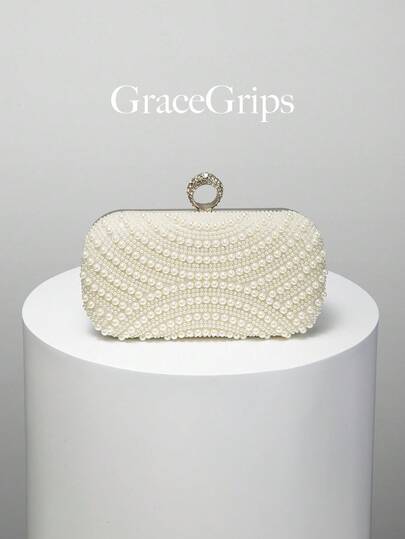 女士优雅/珍珠图案设计盒形手拿包,晚宴包,浪漫婚礼手提包,迷人/精致晚礼服包,闪亮白色盒形钱包,配有金属链,是节日礼物的理想之选。 - 白色 - 查看 6