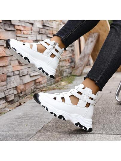女士时尚厚底圆头镂空拉链运动凉鞋,罗马凉鞋,低帮凉鞋 - 白色 - 查看 1