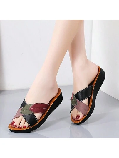 女性時尚戶外拖鞋,防滑中老年扁平涼鞋 - 黑色 - 查看 1