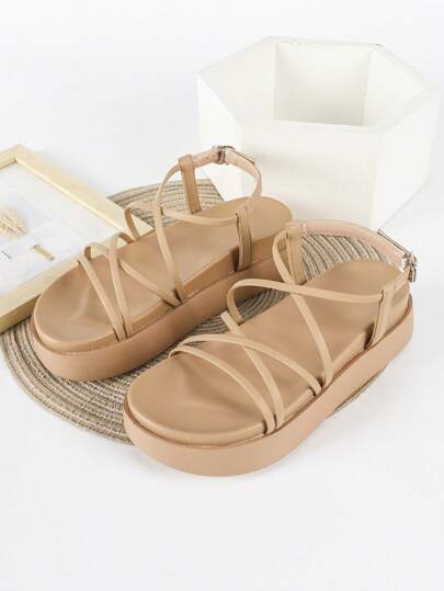女士时尚厚底凉鞋,坡跟防水台厚底高跟拖鞋,双层厚底沙滩鞋,蝴蝶结细带时尚户外鞋,裸色 - 裸色 - 查看 1