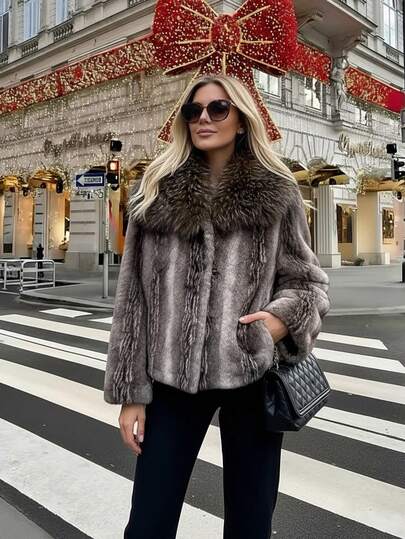 女式仿皮草优雅休闲夹克,秋冬