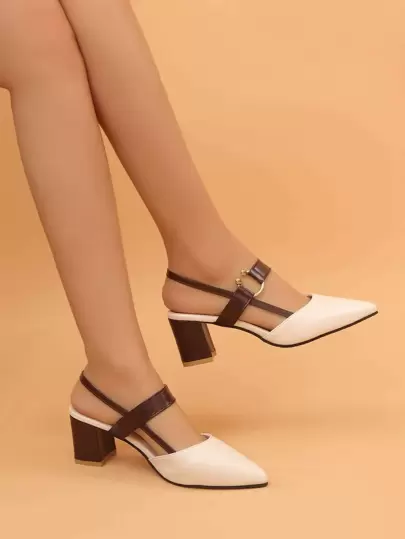 2026春夏新款女士高跟鞋,粗跟时尚百搭尖头舒适套脚穆勒高跟凉鞋 - 米色 - 查看 1