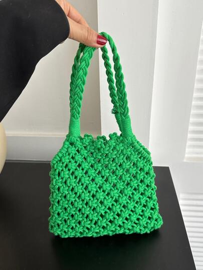 女士鏤空時尚勾織單肩包 - 綠色 - 查看 1