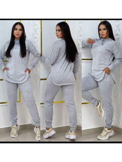 Women's Lanzinha Set, Blouse And Pants, Simple Casual, Knitted Fabric, Pocket, , Home, Night, Street