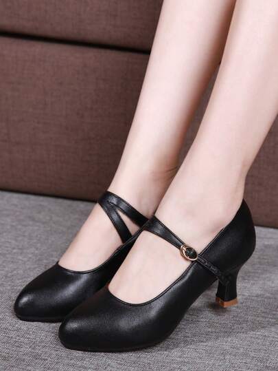 女士拉丁舞鞋,帶有中跟,適用於舞廳和廣場舞,配有柔軟鞋底