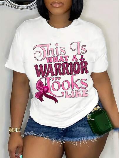 Women's October Breast Cancer Awareness Graphic T-Shirt, Casual Crew Neck Short-Sleeved Top, Soft And Comfortable, Perfect For Everyday Wear And October Wear. - 白色 - 查看 1