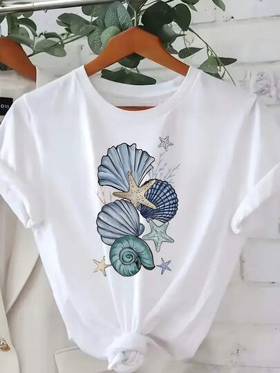 Women's Premium Cotton T-Shirt, Adult Seashell Design, Ocean Bottom, Children's Streetwear Plus Size Up To G5 249