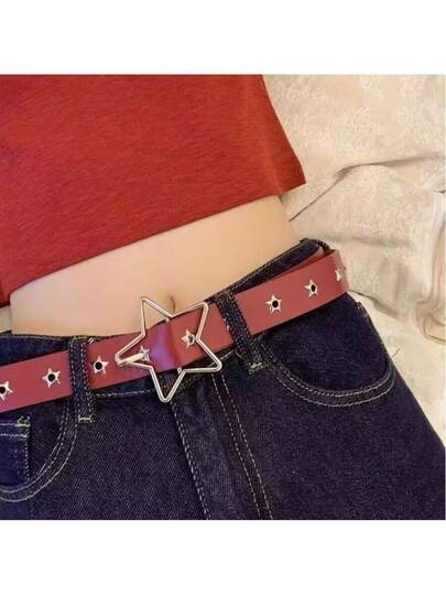 女士朋克风格铆钉星星皮带,百搭牛仔裤,夏季、秋季、万圣节均可佩戴 - 紅色 - 查看 1