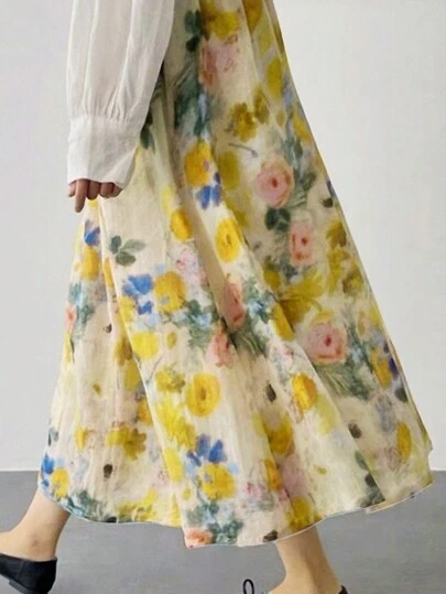 女士隨機印花簡約日常裙 - 彩色 - 查看 1