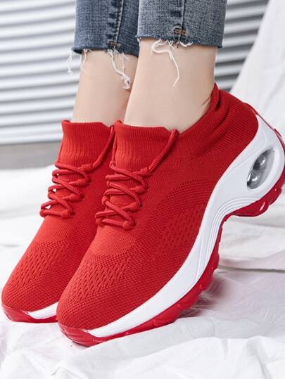 女士紅色步行鞋,前繫帶運動步行鞋 - 紅色 - 查看 5