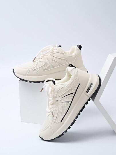 女士圆头系带厚底学生休闲舒适增高运动鞋 - 藍色 - 查看 1