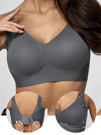 女士无缝提拉文胸,带可拆卸胸垫,无钢圈塑形文胸,提拉紧致内衣,简约时尚提拉文胸,休闲舒适,基础款文胸 - 深灰色 - 查看 9