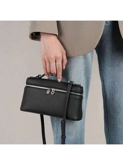 女士单肩水桶包时尚小方形斜挎包软PU皮革拉链开合手机口袋包3色