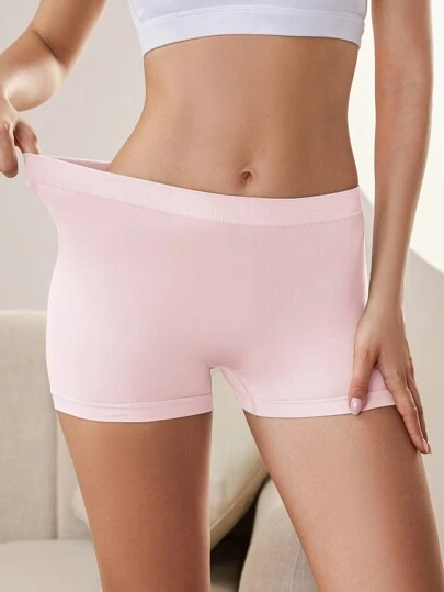 女式纯色弹力舒适防暴露短裤 - 粉色 - 查看 1