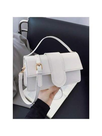 Women's Solid Color Stylish Square Bag, Casual Shoulder Bag, Casual Versatile High-Quality  Commuter Bag, Casual  Purses - 白色 - 查看 1